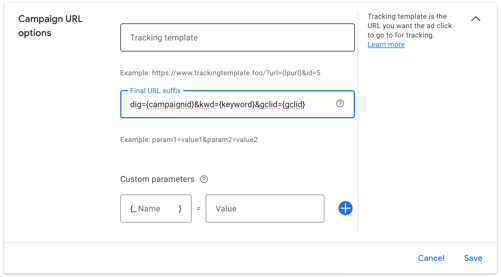 dig={campaignid}&kwd={keyword}&gclid={gclid}